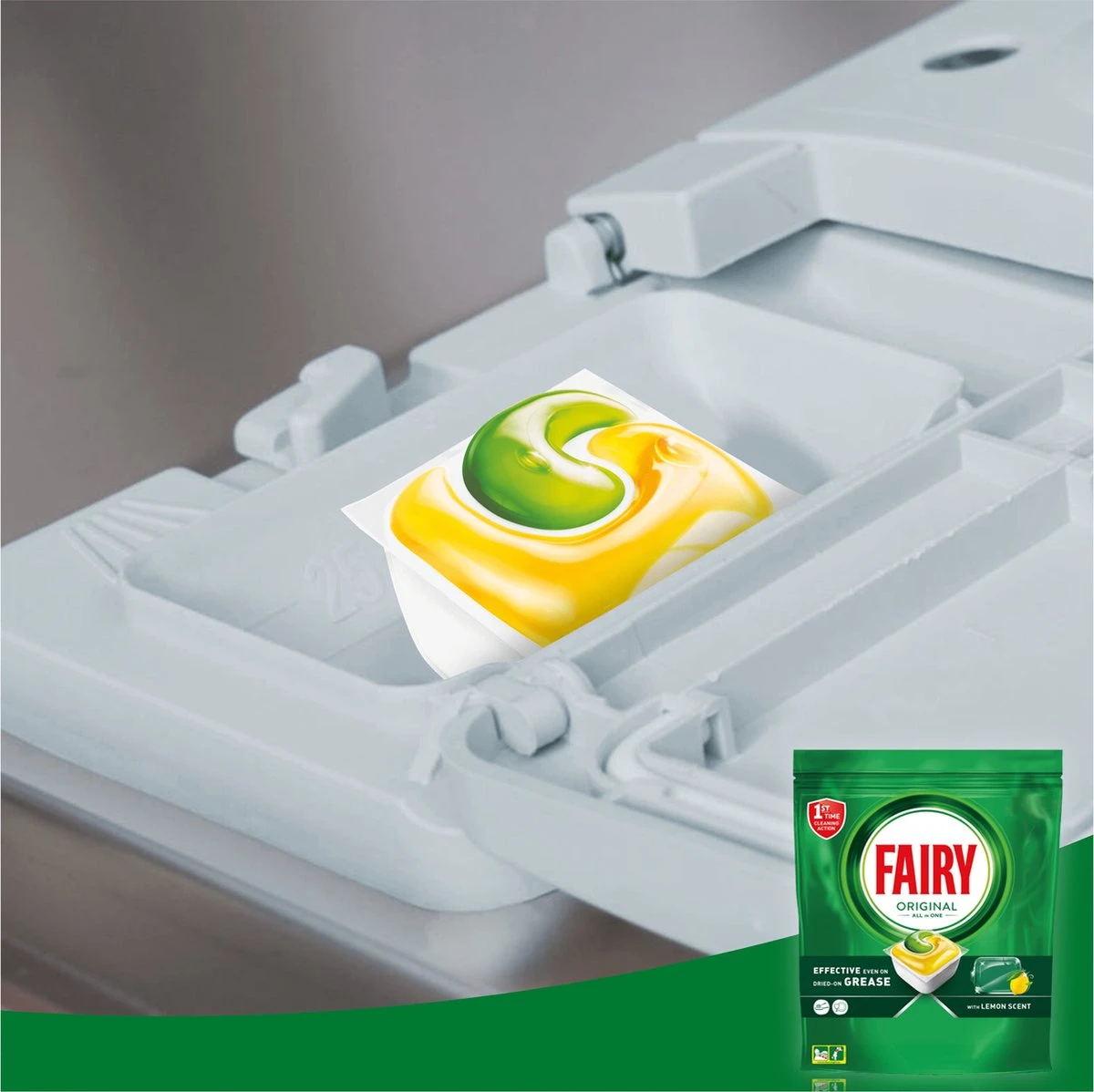 Dreft Original capsules leveren direct een grondige reinigingsactie en zijn zelfs effectief op aangekoekt vet