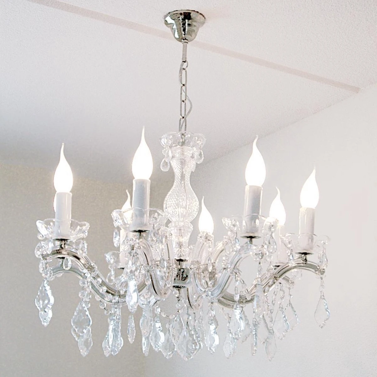 Bedek als eerst de onderliggende vloer of meubilair goed af met een krant of plasticfolie. Besproei de moeilijk bereikbare plaatsen bij het te reinigen product ruim in, zodat het vuil er af kan druipen door al het vloeistof. Het resultaat is een stralende kroonluchter.