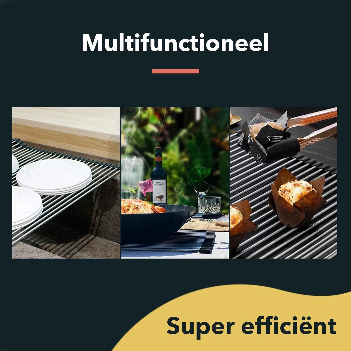 Herkenbaar? Je aanrecht ligt vaak vol met spullen die er helemaal niet horen. Of wat te denken van die massieve stalen pannenonderzetters die zo veel ruimte innemen? Dit, terwijl elke vierkante centimeter werkruimte op een aanrechtblad zeer welkom is. Vind jij het ook zo zonde dat je aanrecht vol staat met onderzetters, afdruiprekken en ander gereedschap, terwijl je juist zo houd van ruimte om lekker te kunnen koken? Met het multifunctionele RVS afdruiprek van HYP. creëer je een net en geordend aanrecht, zodat jij weer optimaal kan genieten van je keuken!