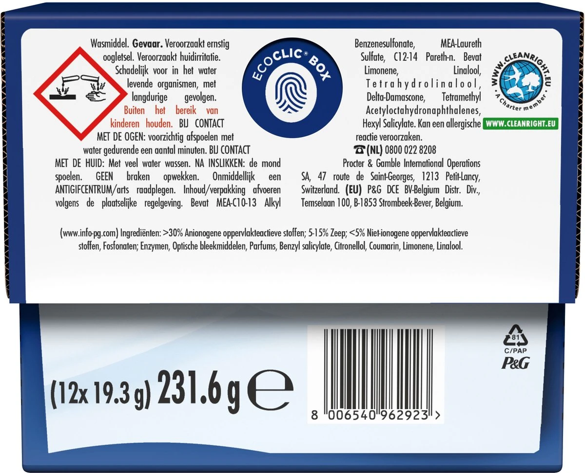 - 5 voordelen: 1. Ultra Reinigingskracht / 2. Langdurige frisheid / 3. Geurverwijdering / 4. Zachtheid en verzorging / 5.Color protection
