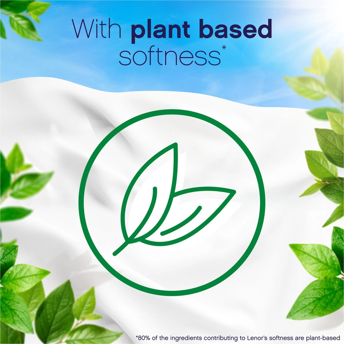 - Met plantaardige zachtheid (85% van de ingrediënten die bijdragen aan de zachtheid van Lenor zijn plantaardig)