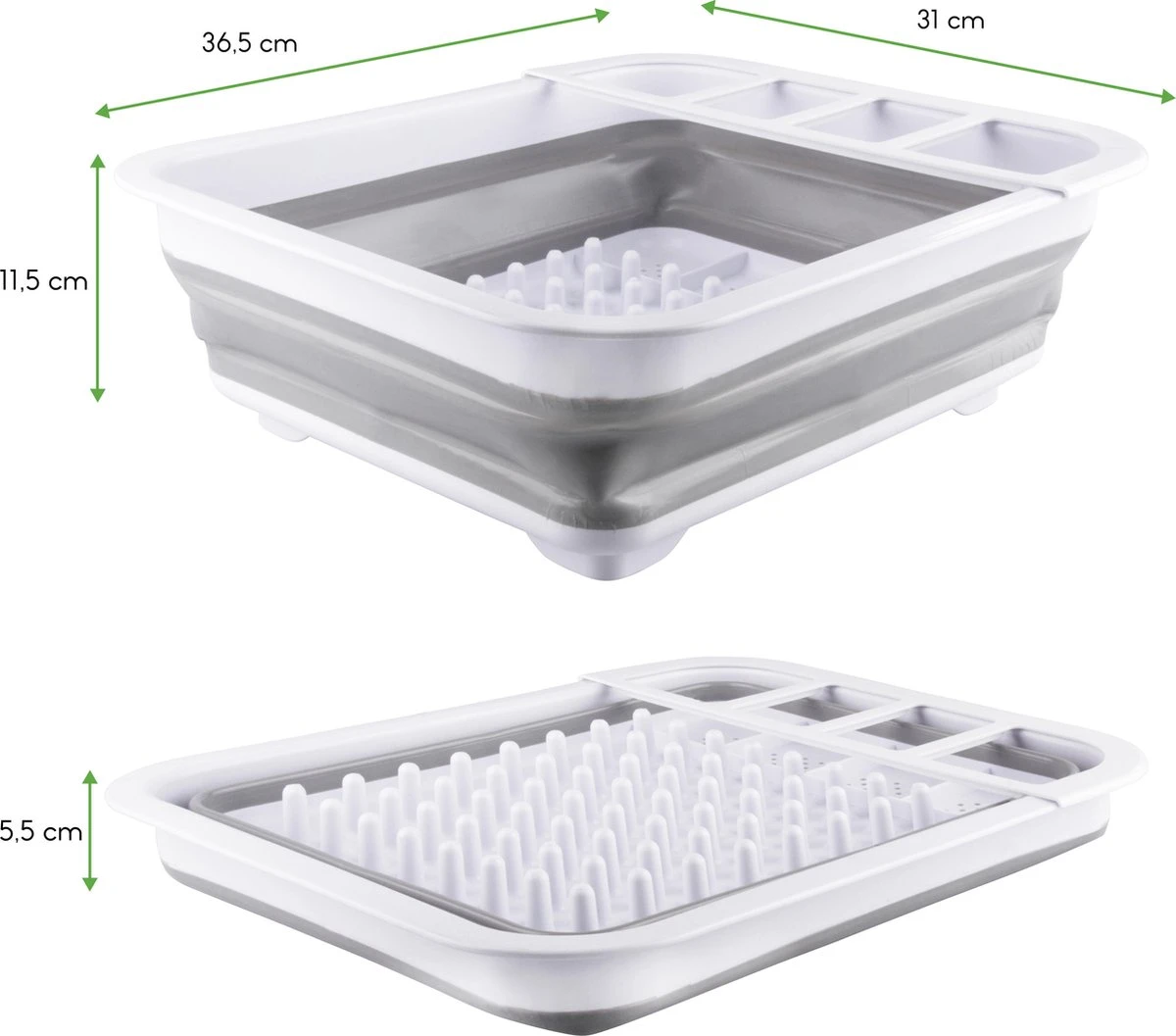 Merkloos Afdruiprek Voor Afwas – Afwasrek – Opvouwbaar – Inklapbaar – Compact – Vaatwasrek Met Bestekrekje