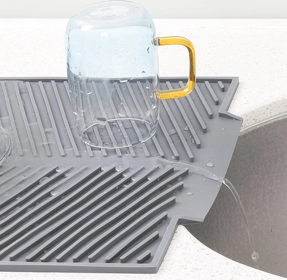 Navaris Siliconen Droogmat Met Afvoer – Aanrecht Droogmat Voor Afwas, Borden, Bestek, Glazen – Grijs