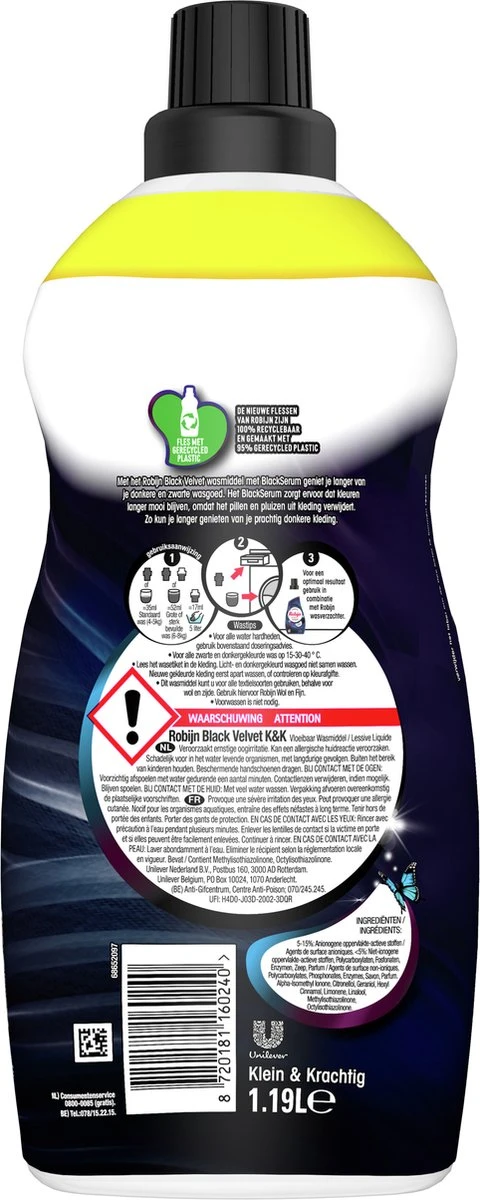 - Robijn Black Velvet Vloeibaar wasmiddel houdt zwarte kleding lang mooi