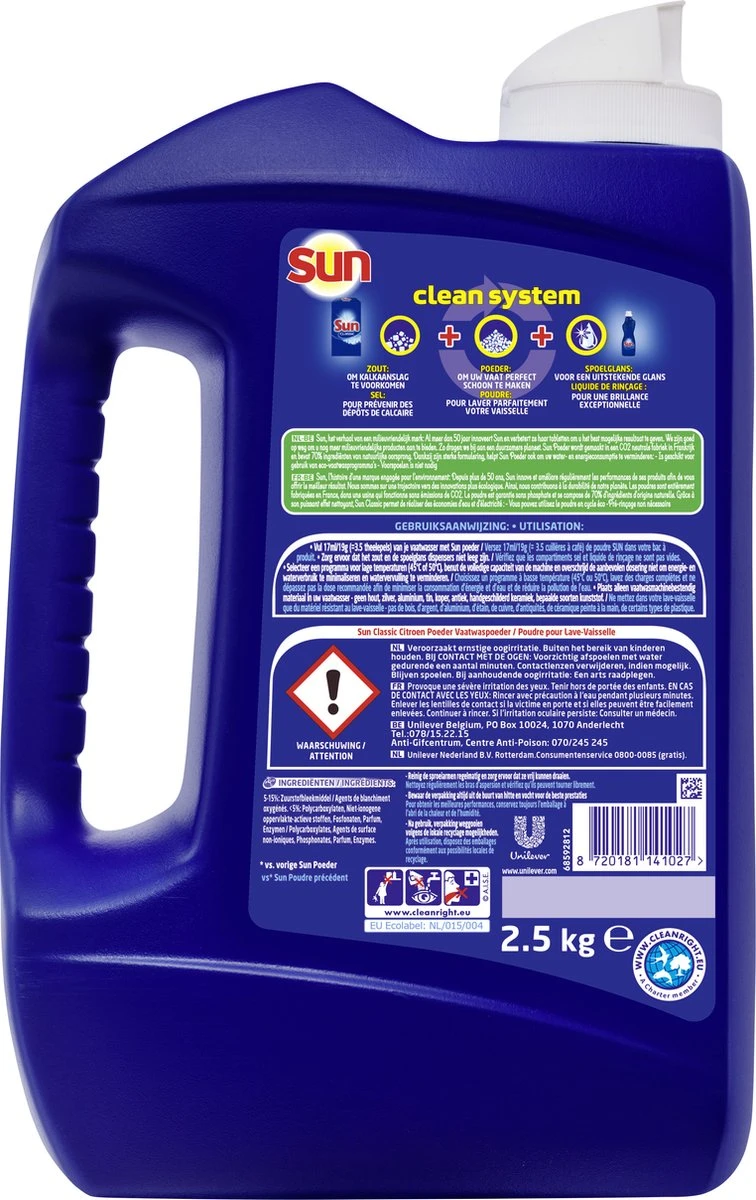 Sun Classic Ecolabel vaatwaspoeder verwijdert de meest hardnekkige vlekken.